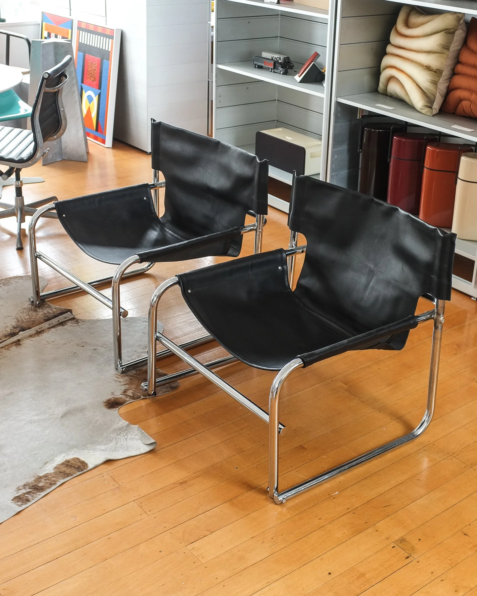 Condition Report: Good condition. leather is in really nice shape, some light marking with age. Aluminium shows some tarnishing and scratching in places, but presents very nicely. Knoll castors have replaced the original castors.