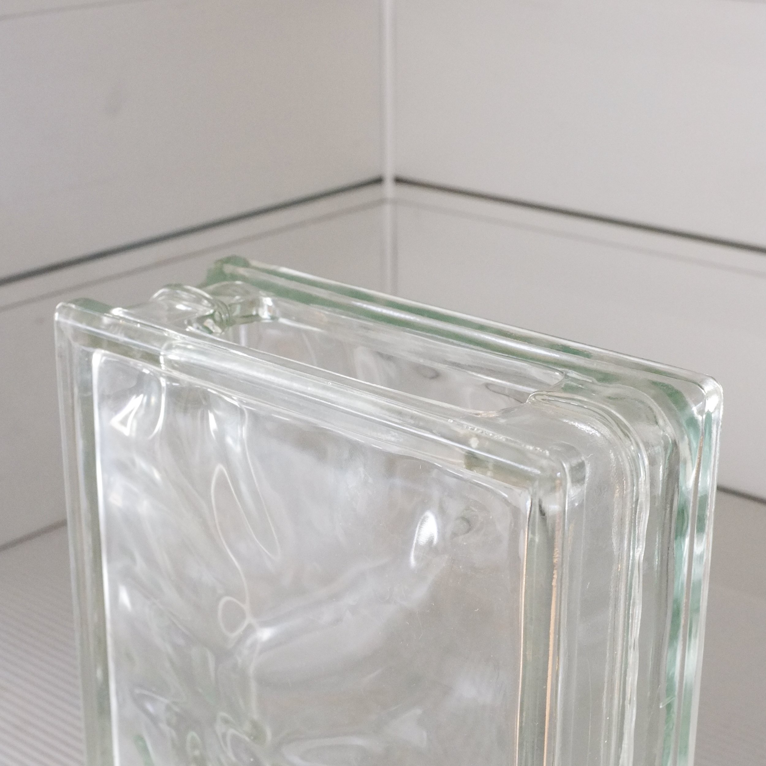 Classic German Glass Block vase. Capturing and reflecting light in an amazing way, they are an intriguing look on their own, or filled with your favourite flowers.
