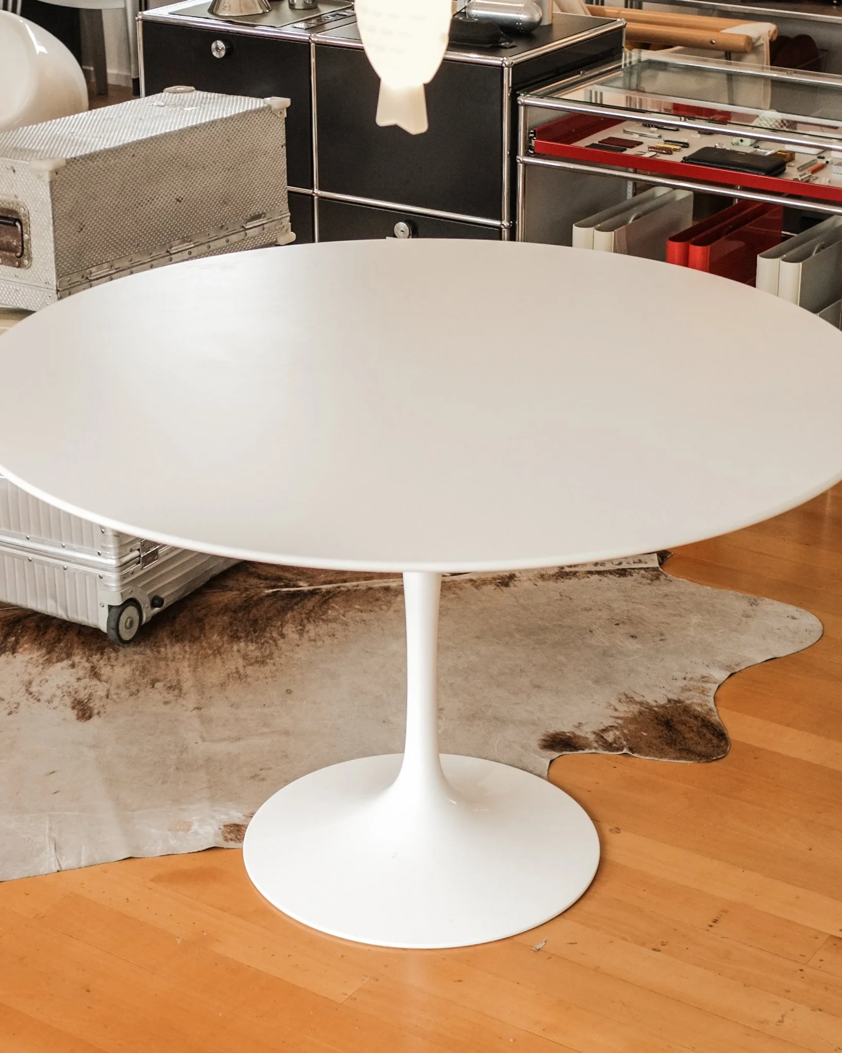 An enduring icon of mid-century design, the Tulip table was created by Finnish-American architect Eero Saarinen with the intention of eliminating the “ugly, confusing, unrestful world” beneath traditional tables.